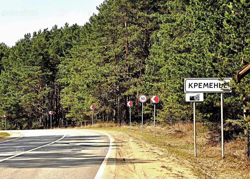 Поворот автомобильно дороги с дорожными знаками