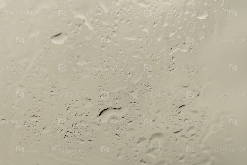 Стекло с каплями дождя на сером фоне. Капли дождя на лобовом стекле автомобиля