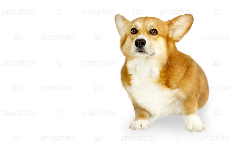 Симпатичная валлийская собака корги пемброк сидит изолированно на белом