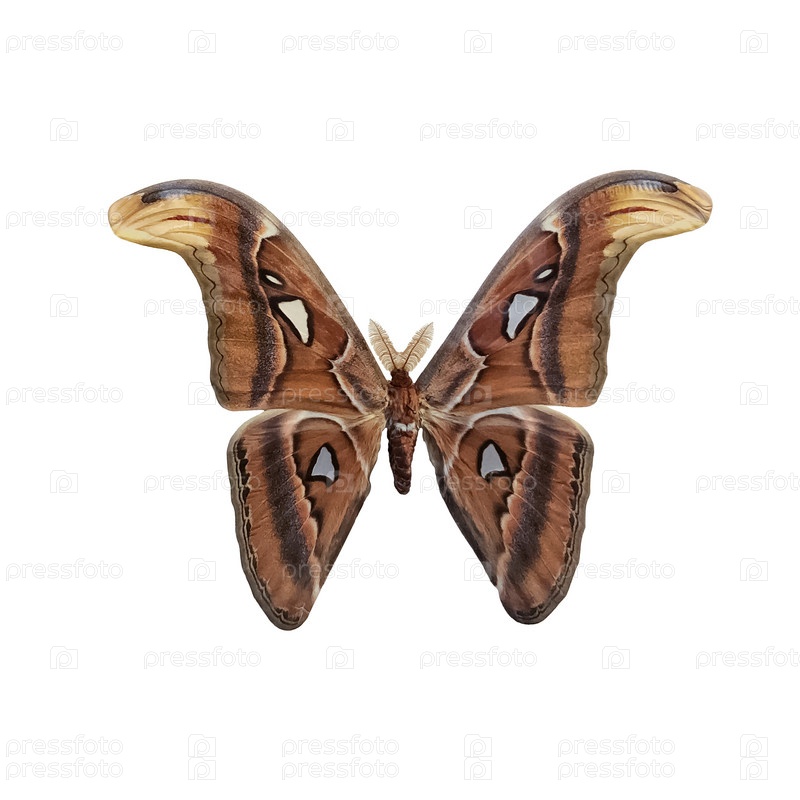 Бабочка атласа мотылька, изолированные на белом фоне