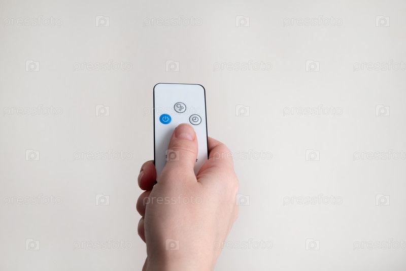 Пульт дистанционного управления в руке человека, светлый фон