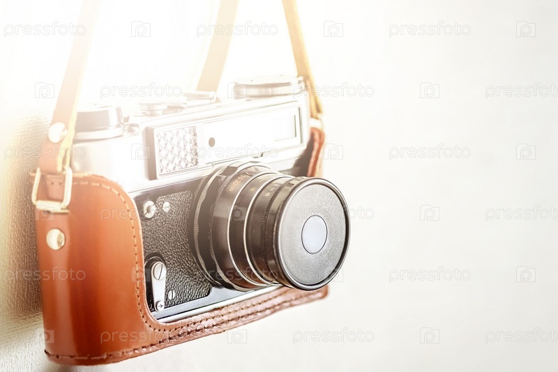 Старый винтажный фотоаппарат slr в кожаном чехле