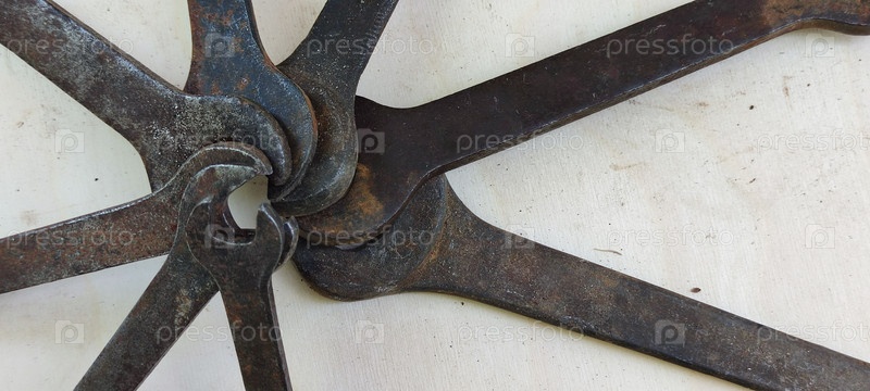 Восемь больших железных трубных ключей. Восемь больших железных трубных ключей