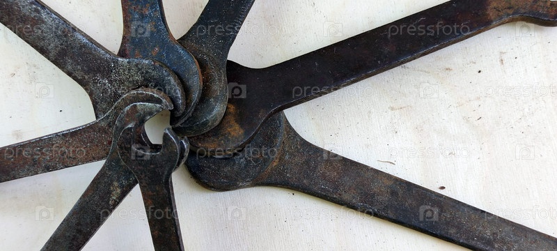 Восемь больших железных трубных ключей. Восемь больших железных трубных ключей
