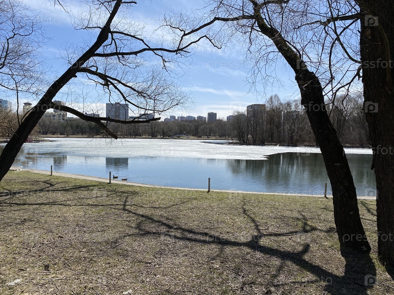 Весна в городском парке в сухой солнечный день