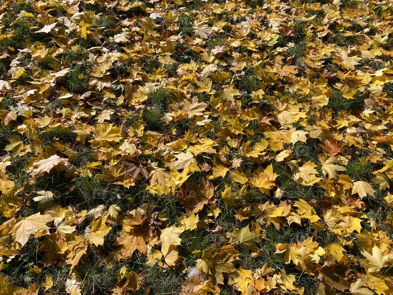 Ковер из желтых кленовых листьев в осенний сухой солнечный день