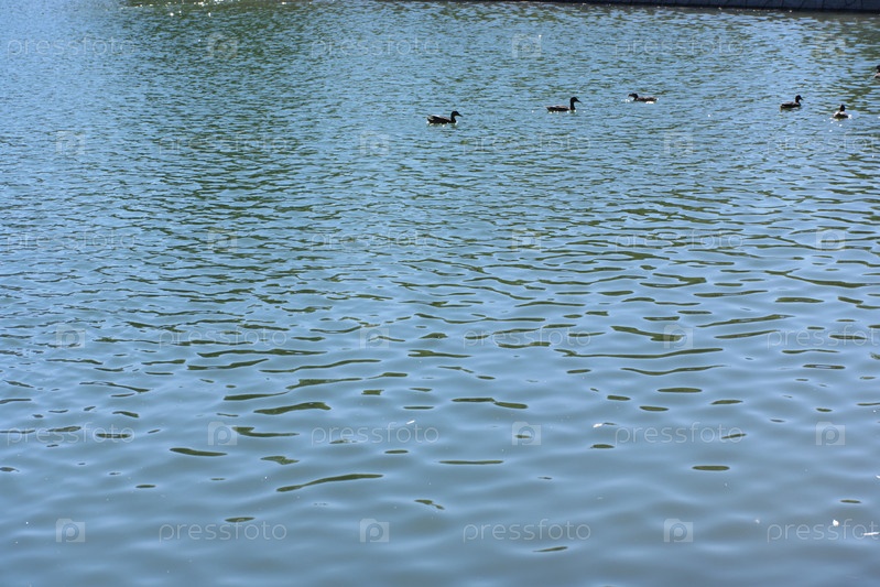 Рябь на воде в пруду городского парка в сухой солнечный летний день