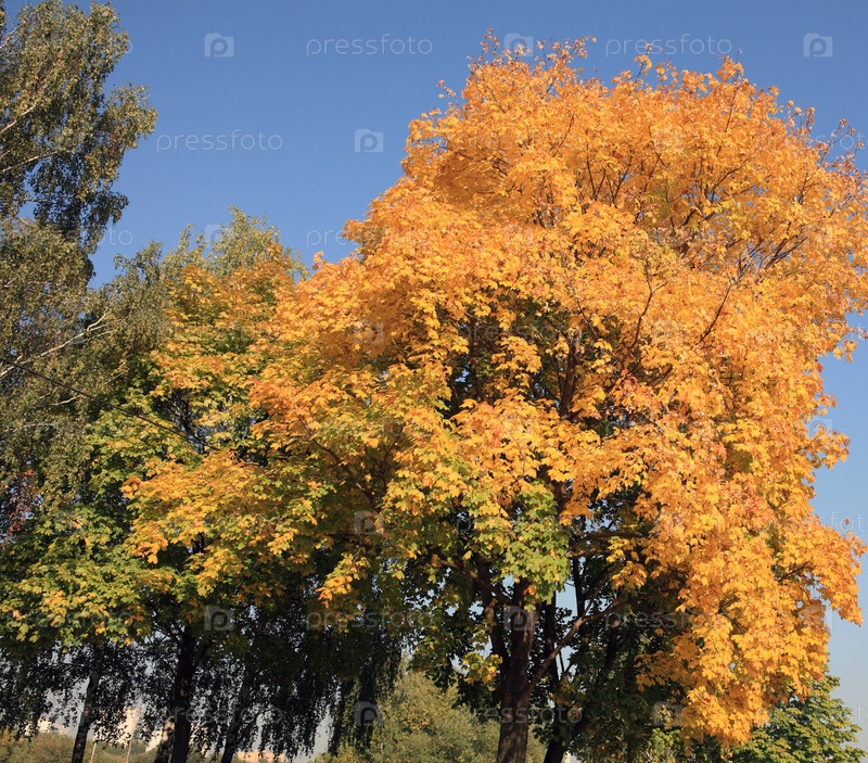 Желтые кленовые листья на дереве