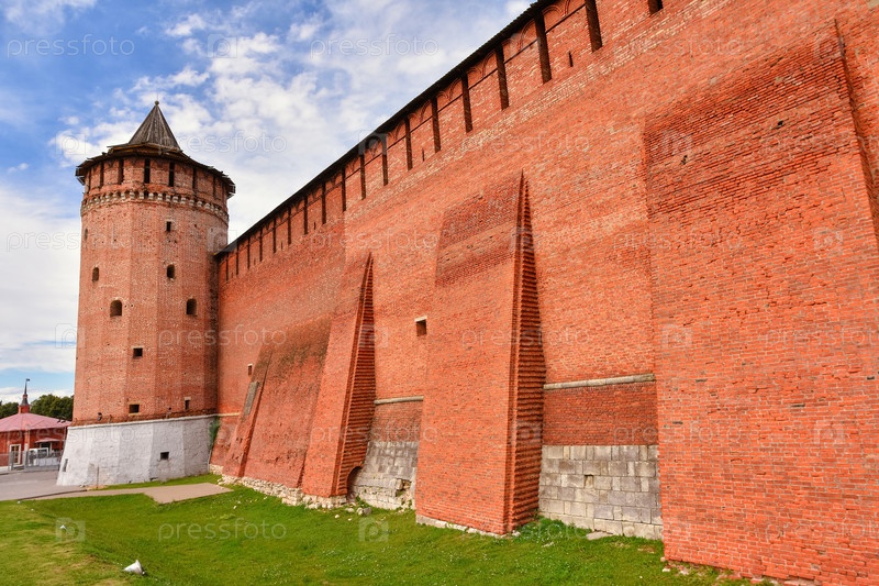 Кремль в Коломне, красная крепость, кирпичная кладка древнего укрепления
