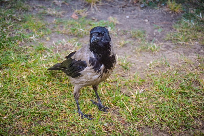 Ворон крупным планом, любопытный ворон