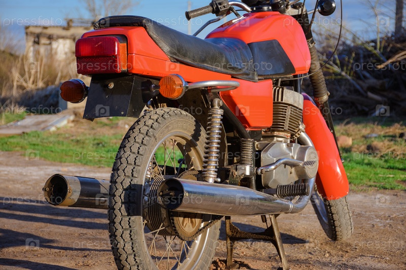 Задняя часть винтажного мотоцикла, красный велосипед