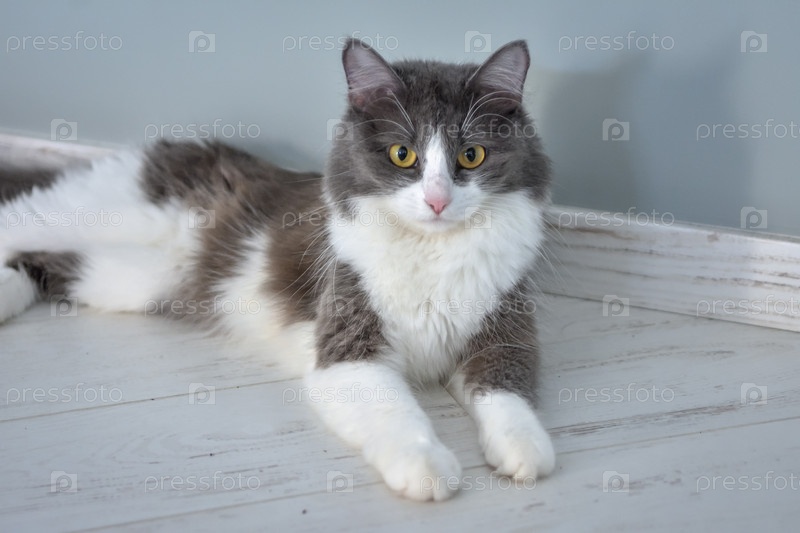 Портрет лежащего на полу кота
