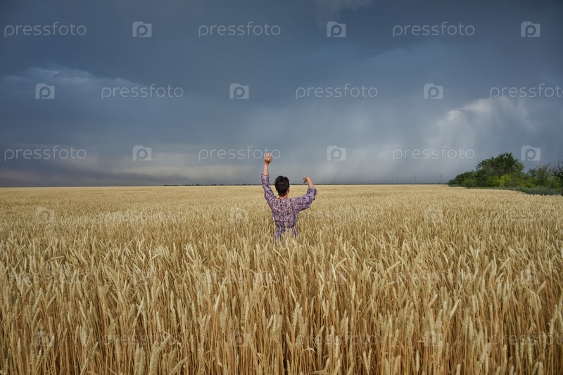 Девушка в пшеничном поле перед грозой
