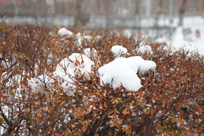 снег в кустах