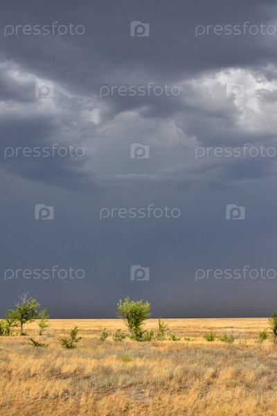 Грозовое небо в поле, гроза в степи, пожар в степи
