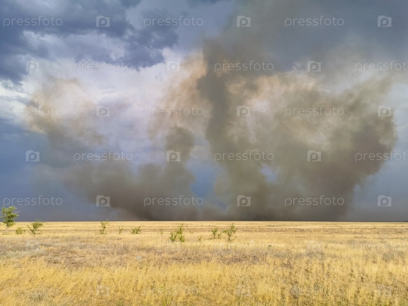 Грозовое небо в поле, гроза в степи, пожар в степи