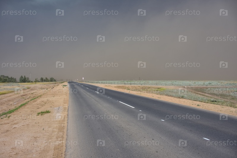 Грозовое небо на трассе, гроза в степи