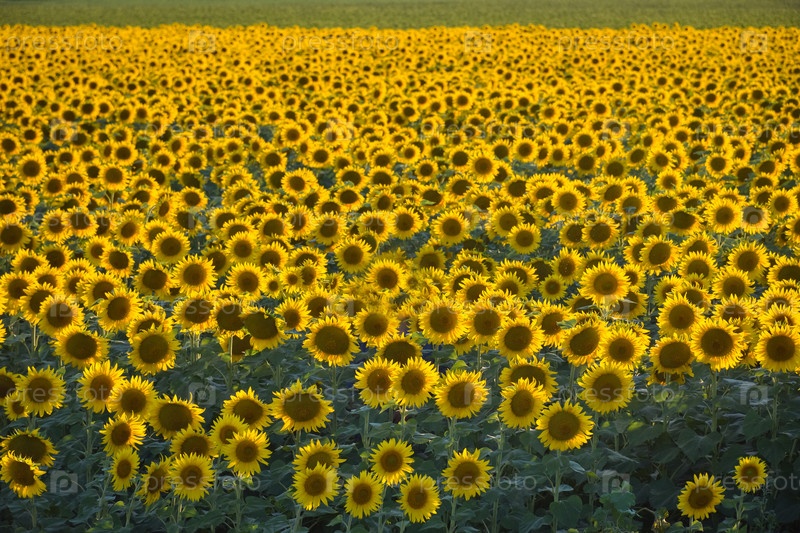 Поле подсолнухов на закате, много подсолнухов