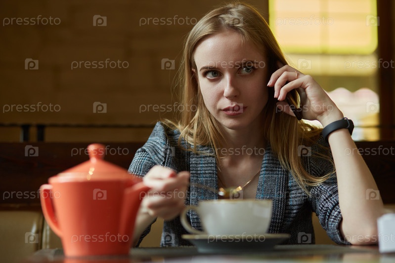 Серьезная женщина с телефоном