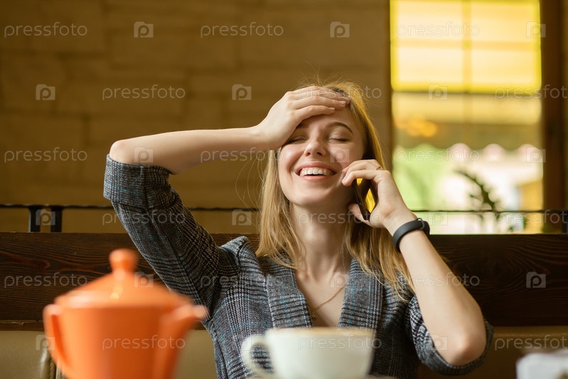 Блондинка смеется