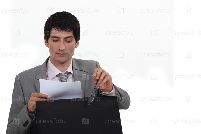 Бизнесмен читает записи