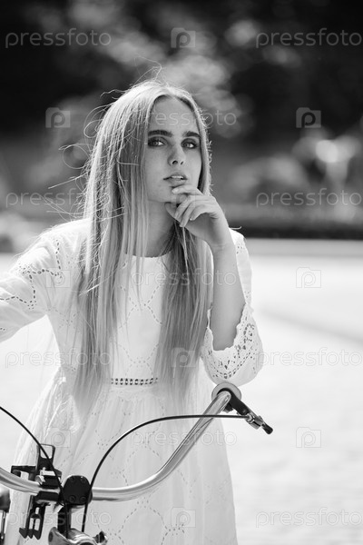 Молодая женщина велосипедист