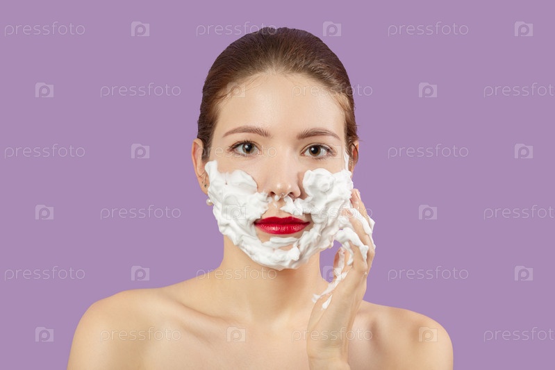 Женщина с кремом для бритья