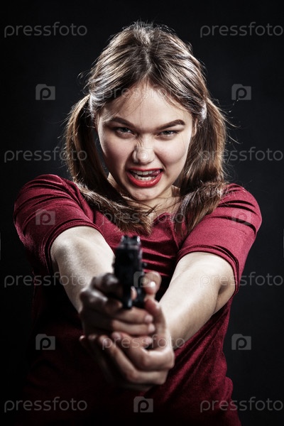 Сердитая девушка с пистолетом