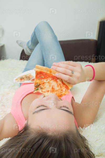 Девушка ест пиццу