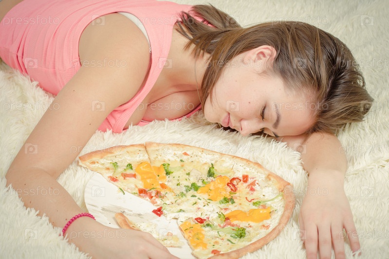 Переедать девушка лежа