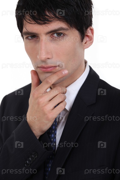 Бизнесмен с рукой на подбородке