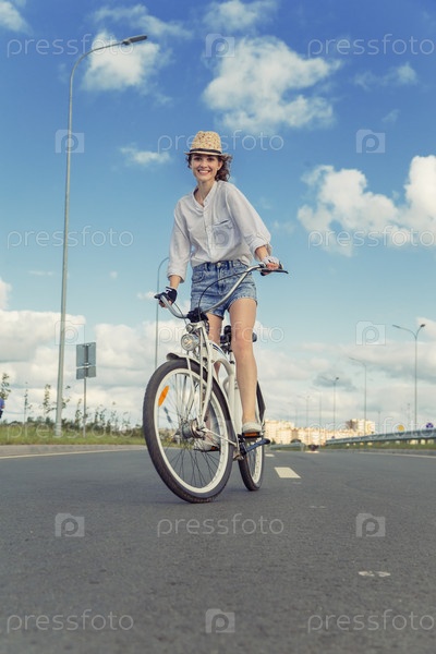 Девушка передвигается на велосипеде