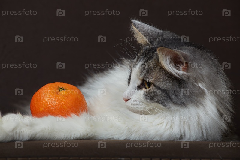 Кошка с мандарином