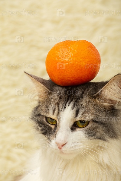 Кошка с мандарином