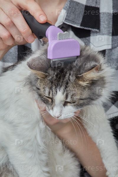 Женщина ухаживает за кошкой