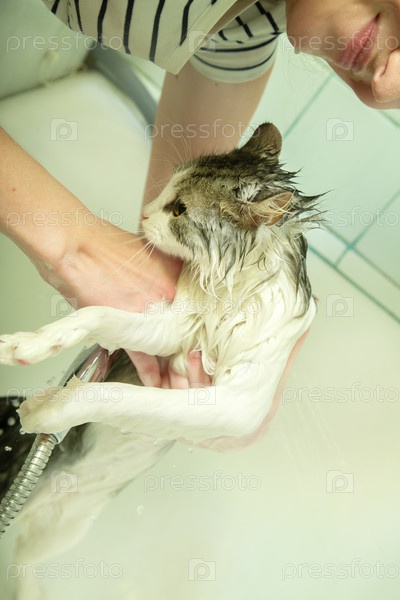 Моет домашнюю кошку