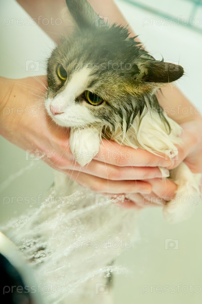 Женщина стирает кошку