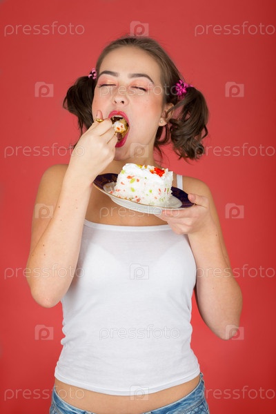 Девушка ест сладкий десерт
