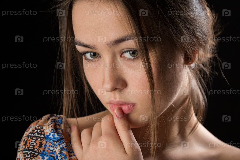 Грустная задумчивая молодая женщина-мыслитель на черном фоне
