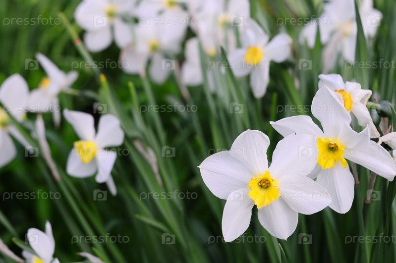 Нарциссы на фоне грядки