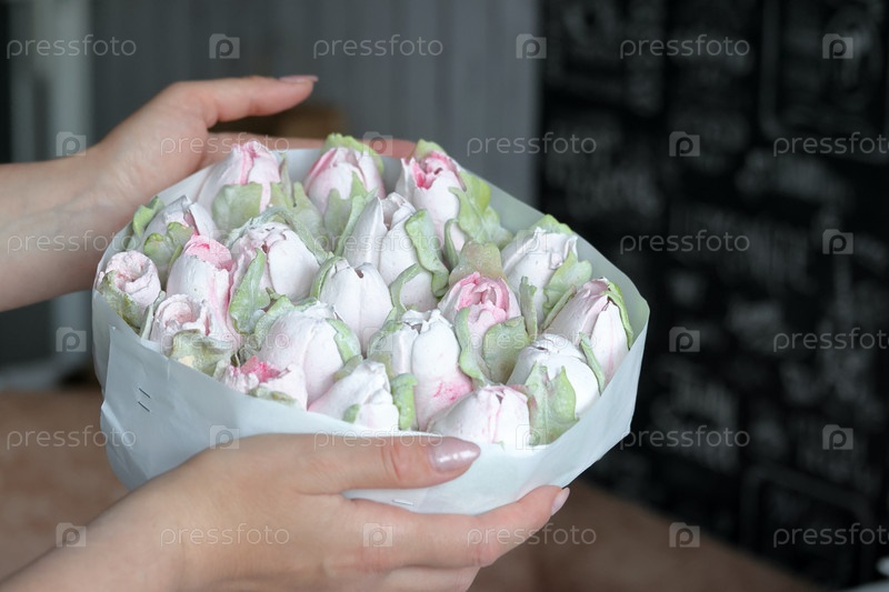 Зефирный букет. Зефир цветы. Упаковано в крафт-бумагу