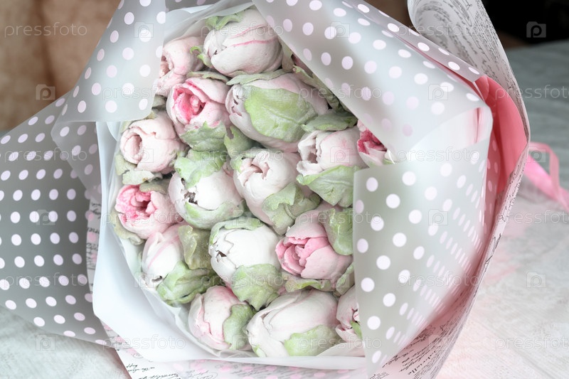 Зефирный букет. Зефир цветы. Упаковано в крафт-бумагу