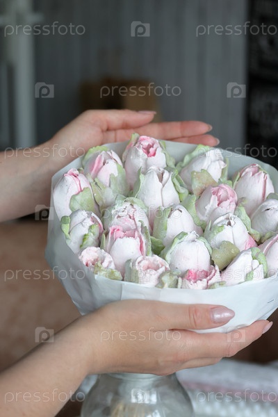 Зефирный букет. Зефир цветы. Упаковано в крафт-бумагу