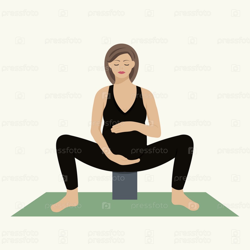Иллюстрация в стиле флэт с изображением беременной женщины, занимающейся йогой