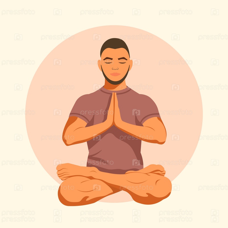 Молодой мужчина в позе лотоса с руками намасте