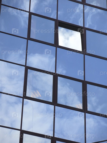 Небо отражается в стеклянных окнах бизнес-центра