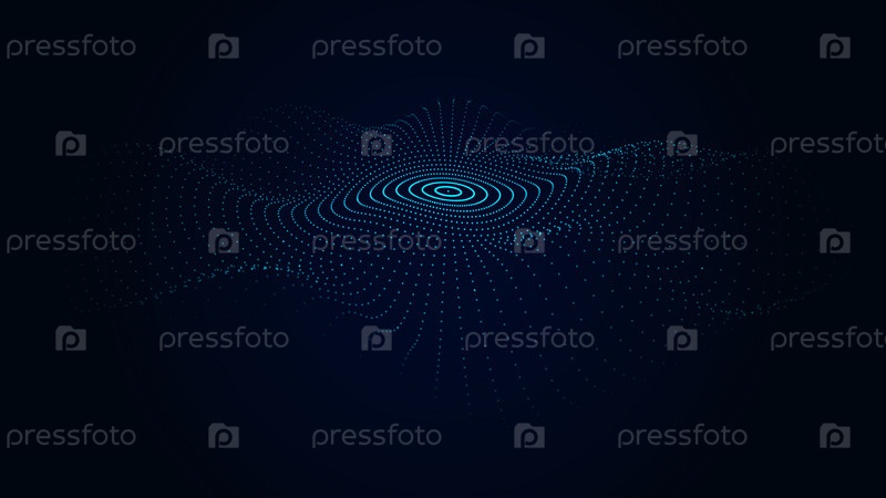 Вектор футуристический темный фон. Волновой эффект паутины точек. Большие данные. Иллюстрация технологий и искусственного интеллекта. Эффект осцилляции частиц