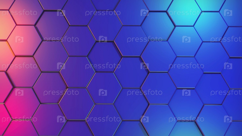 Абстрактный шестиугольный фон. Трехмерная иллюстрация шестиугольника. Концепция футуристических технологий. Геометрические данные. 3D-визуализация