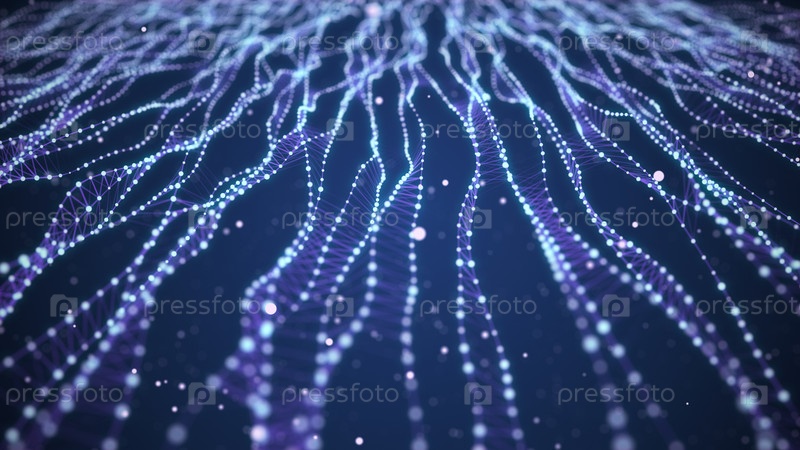 ДНК из движущейся волны и частиц Абстрактный темный фон Медицинская наука Биотехнология Понятие о генной клетке Синие точки 3D визуализация