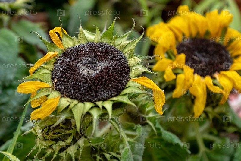 Соцветие подсолнуха с опавшими лепестками крупным планом